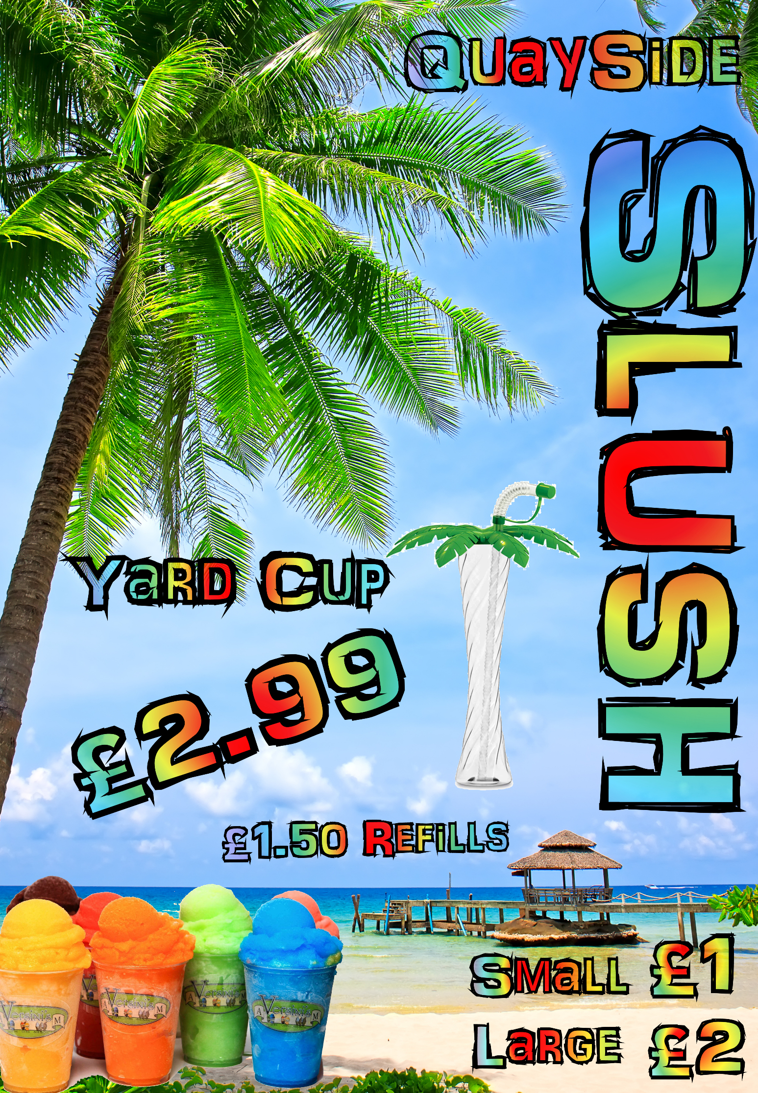 - The second window needs to advertise our slush, small slush 89p - Large £1.39 - Yard Cup £1.99