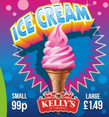 - The first window sign, needs to be about our cheap mr whippy ice cream, where it will be sold for 89p. it must have a cornet cone with soft icecream top. with good artwork, advertising the low price of only 99p.