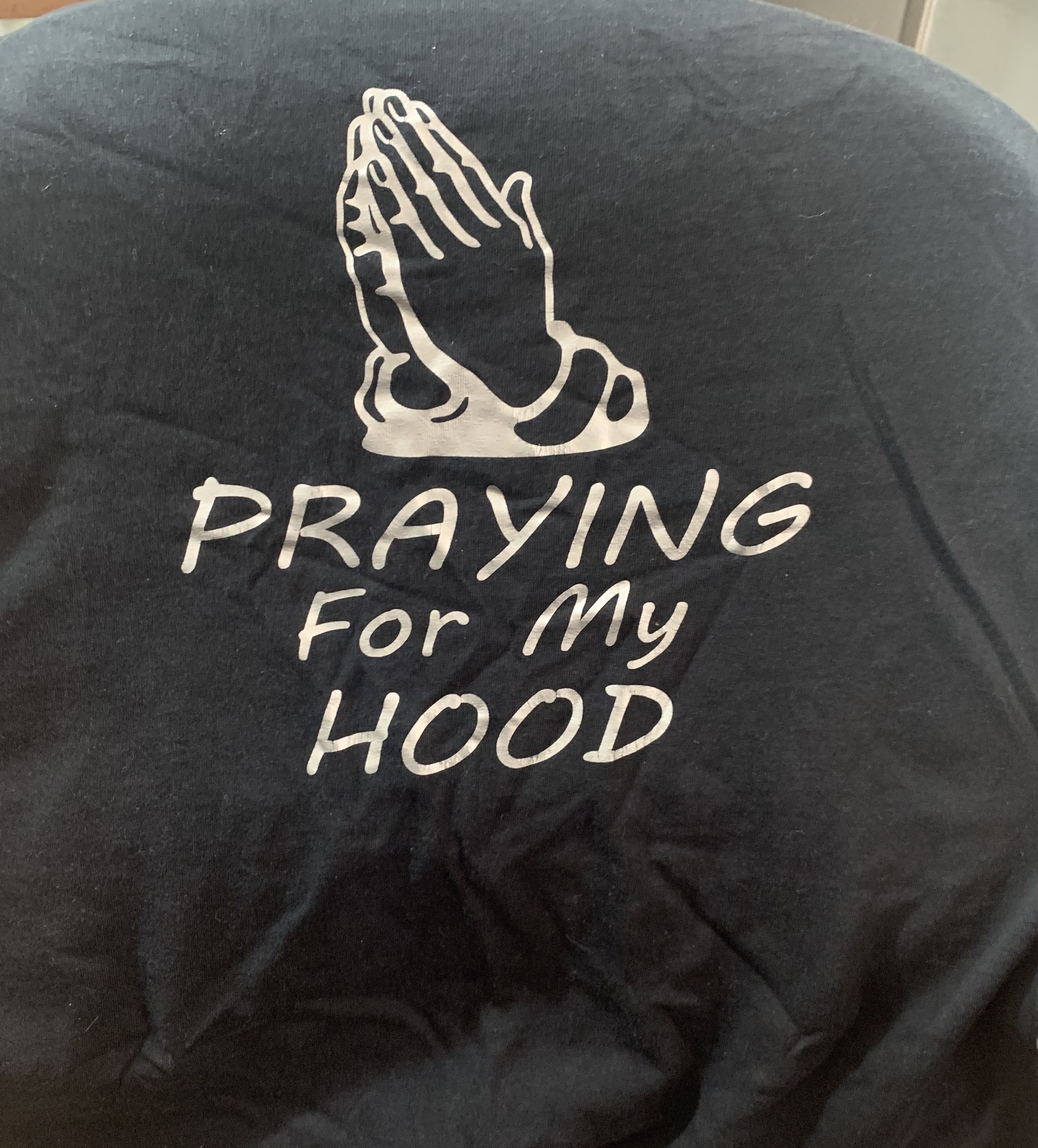 this design is for my neighborhood. we have been getting lots of young people die from gun violence. there is hate for police officers and people are taking things into their own hands. many times people ask me to pray for them after someone dies and after families take a loss. i want to move people to pray before someone dies. This shirt will represent that we are praying for people before someone is taken out. Before someone decides to hate on an officer and take matters into their own hands. I made a basic logo several years ago. It was your basic praying hands with the word "Praying for my hood". I want to make a statement in my hood. I would like to get something new to attract the urban community and encourage people to pray and step in for each other instead of minding their business. This shirt will be put on vinyl.