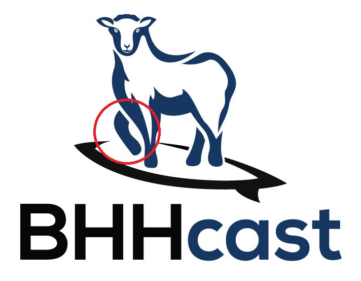 We need a logo for a podcast. We want the logo to essentially incorporate a customized drawing of a sheep that we can brand and use in various ways. The name of the podcast is the BHHcast (pronounced "Bah"cast - hence the sheep). We have three hosts that we refer to as the shepherds. We would like to have the sheep on a surfboard. We do not want a microphone or headphones (or other typical podcast imagery) in the logo. We would like a logo with BHHcast in it and the sheep, but need to be able to isolate the sheep and hopefully have a couple variations of the sheep so it can be used in different merchandise, online, etc.