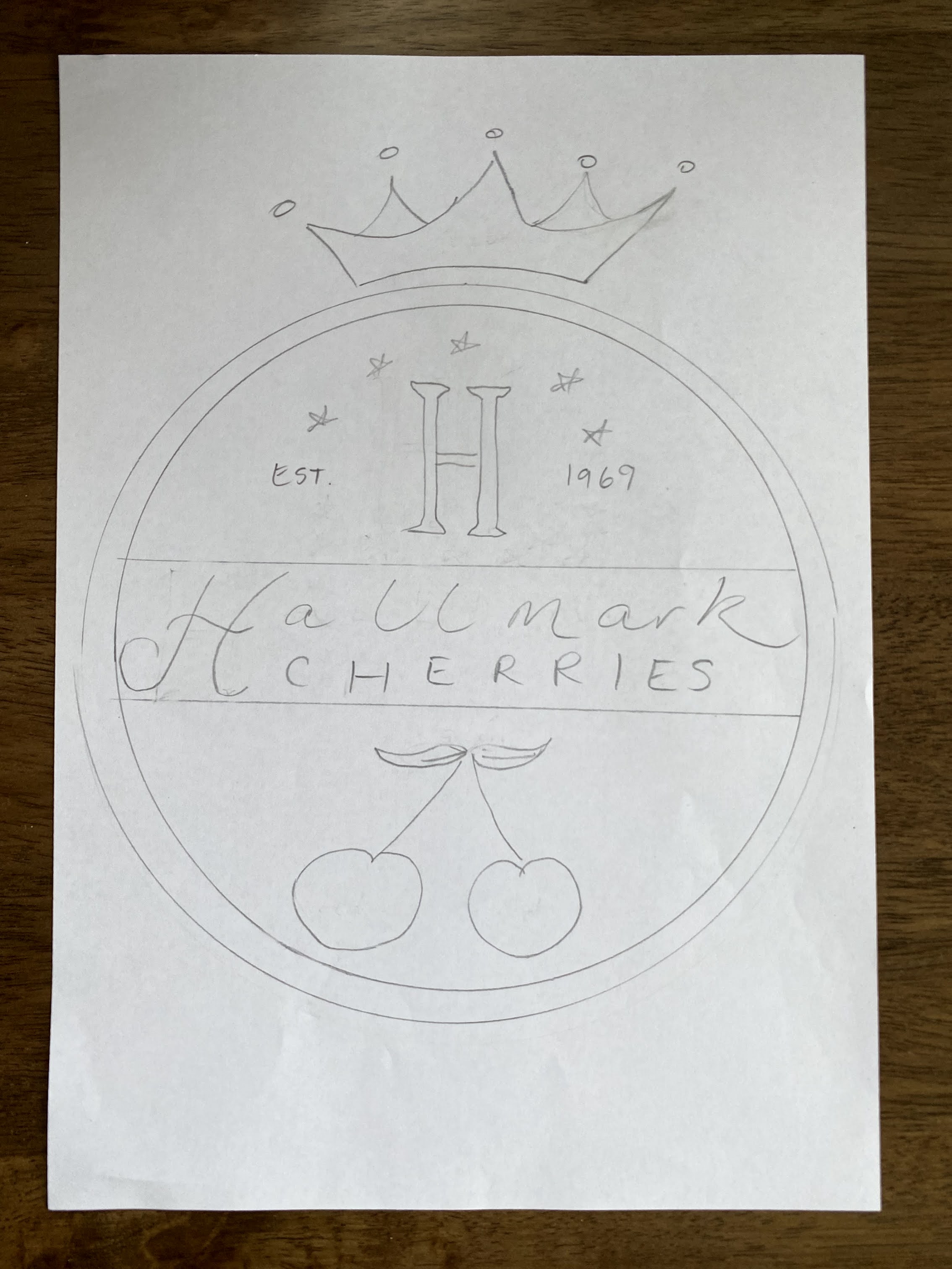 Logo should have a similar theme to the one attached (concept.jpg). A focus on the letter “H” and “Hallmark Cherries” where Royal Brand is and cherry/ies.