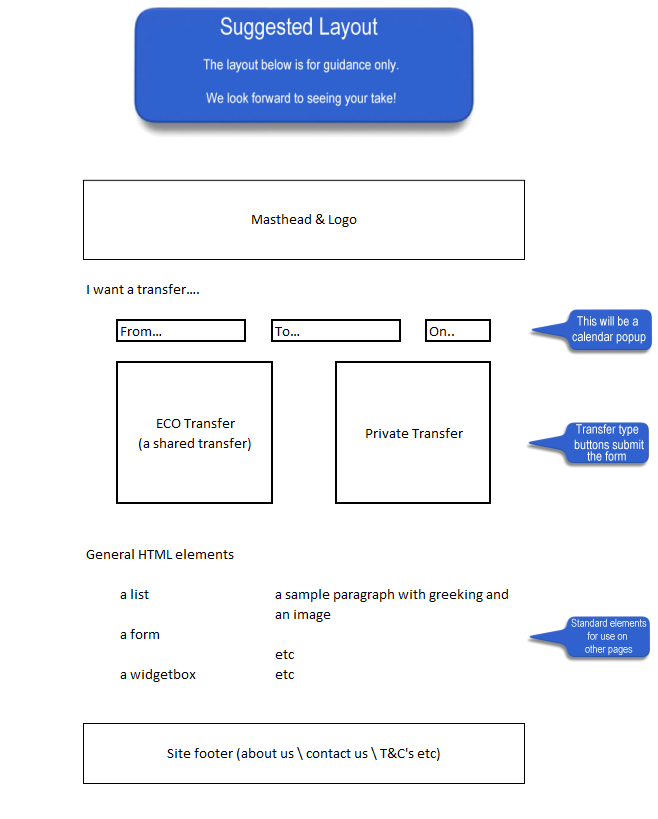 We require the look and feel creating for a new website which will allow customers to request & compare airport to resort transport transfers.