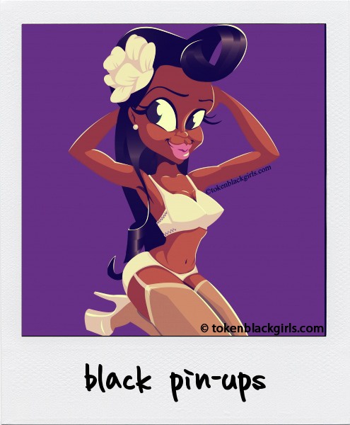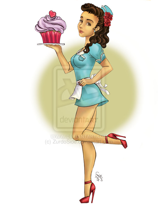 - African -American pin-up waitress with hot dogs and sausages