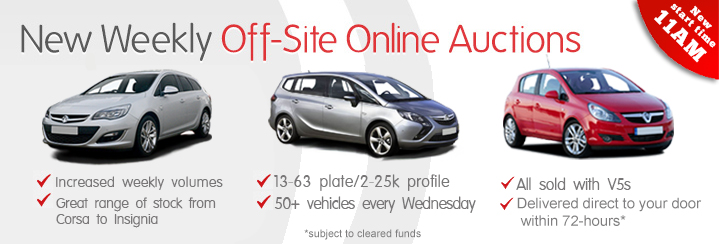 We hold remote off-site auctions on the first 3 Wednesdays of every month. In these online auctions, we offer c75-100 vehicles but only Vauxhall cars such as Corsa, Mervia, Astra, Insignia & Zafira. We are not allowed to refer to the manufacturer (Vauxhall) in name or logo however we are permitted to name the models (as listed) and use images as a visual reference (only use current Vauxhall model images - no other brand for this one please). Please view attached banner (GM Jan 14) as an example of what we currently have.