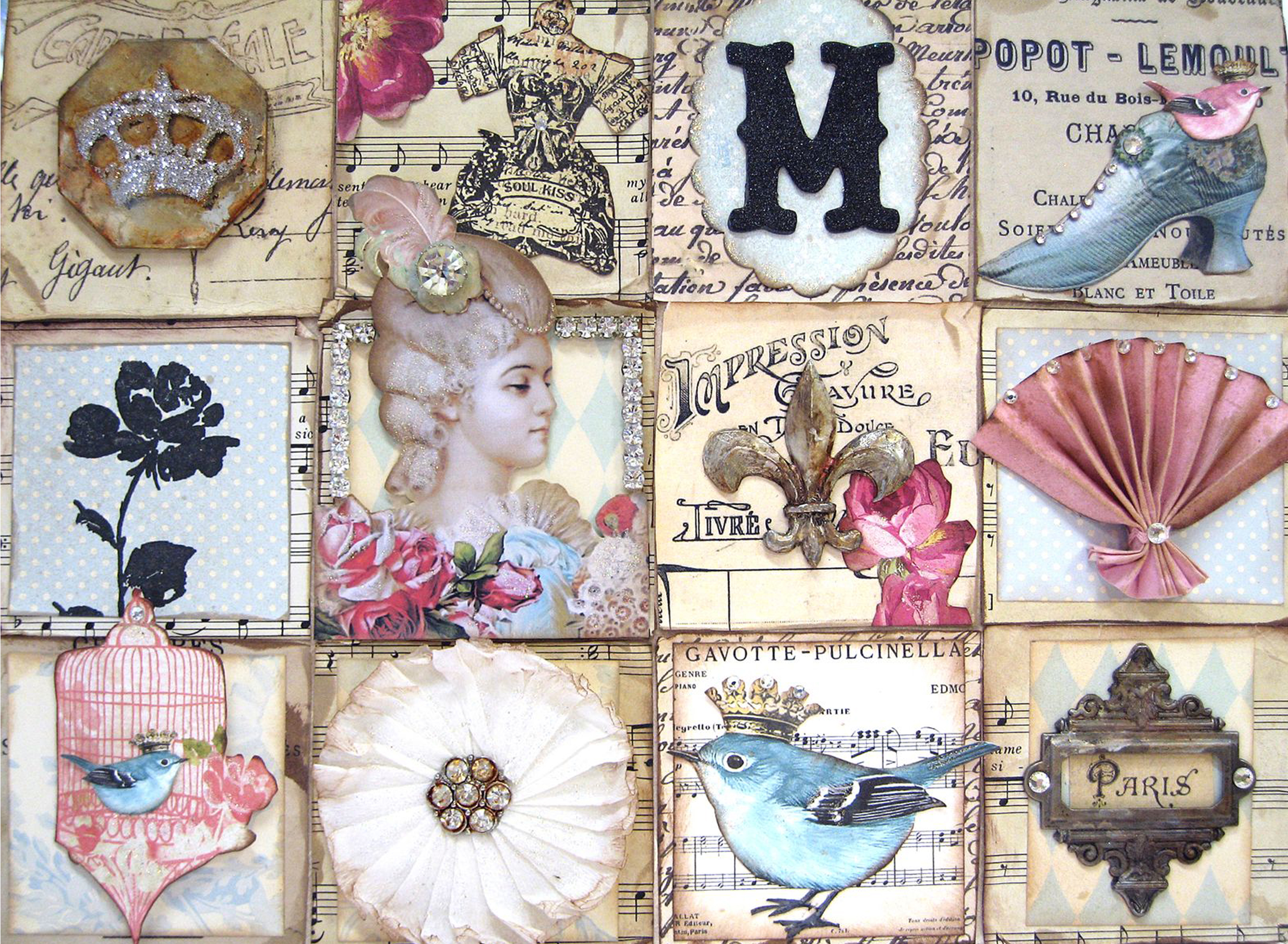 I'd like to keep image of Marie Antoinnette head, and have other images changed to food (macarons, teacups, cakes, cake stands) and the letter U (instead of M) - see pic attached