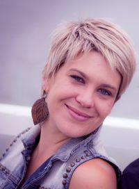 The photograph of the woman with short blonde hair is the hairdresser I wish to feature in the flyer for the COLOUR BAR