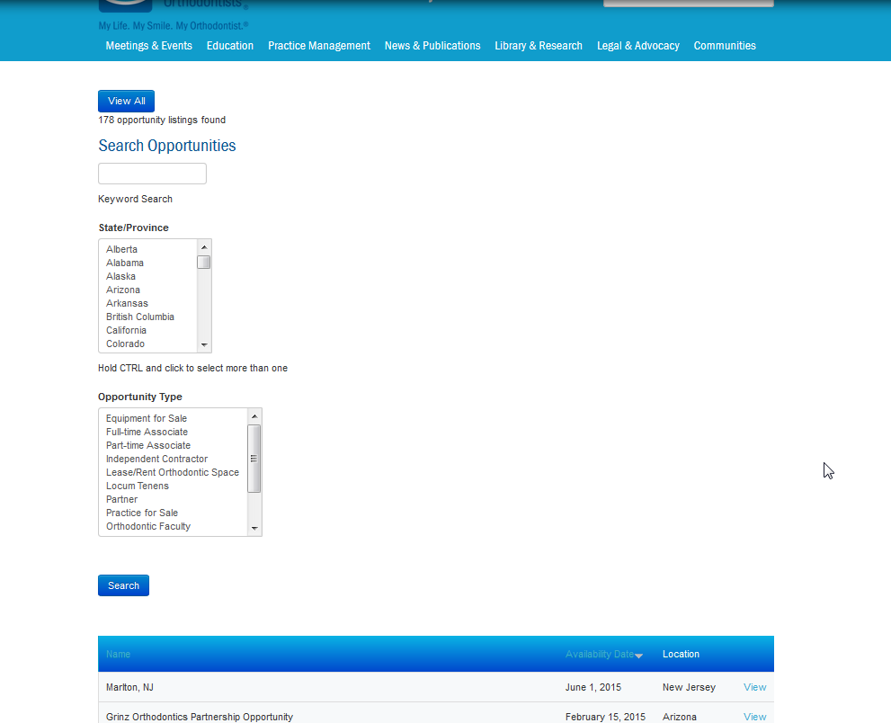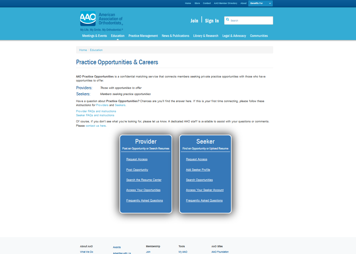 American Association of Orthodontists Needs a design for our orthodontist job bank.