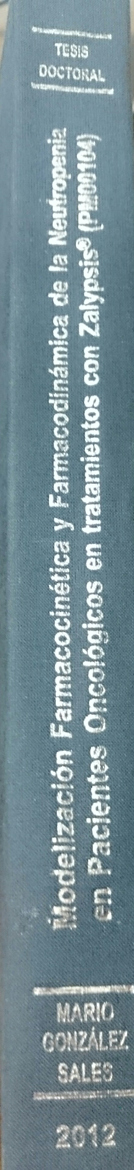 - The following details should appear in the book cover: 1)Title: "Farmacocinética y farmacodinamia de oxaliplatino intraperitoneal con hipertermia en pacientes con carcinomatosis peritoneal sometidos a cirugía" 2) University Logo (attached) with the following sentence: "Doctorado en biomedicina y farmacia" 4) The words "Tesis Doctoral", "Author´s name" and year "2015".